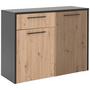 Die KommodeLOUIS besticht durch ihr modernes Design in Schwarz kombiniert mit Artisan Eiche Dekor. Mit den Maßen von ca. 110,5 x 88 x 42 cm (B x H x T) bietet sie großzügigen Stauraum.