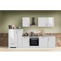 - Inkludierte Elektrogeräte: Dunstabzugshaube, Einbauherd, Geschirrspüler, Kühlschrank mit Gefrierfach, Glaskeramikkochfeld