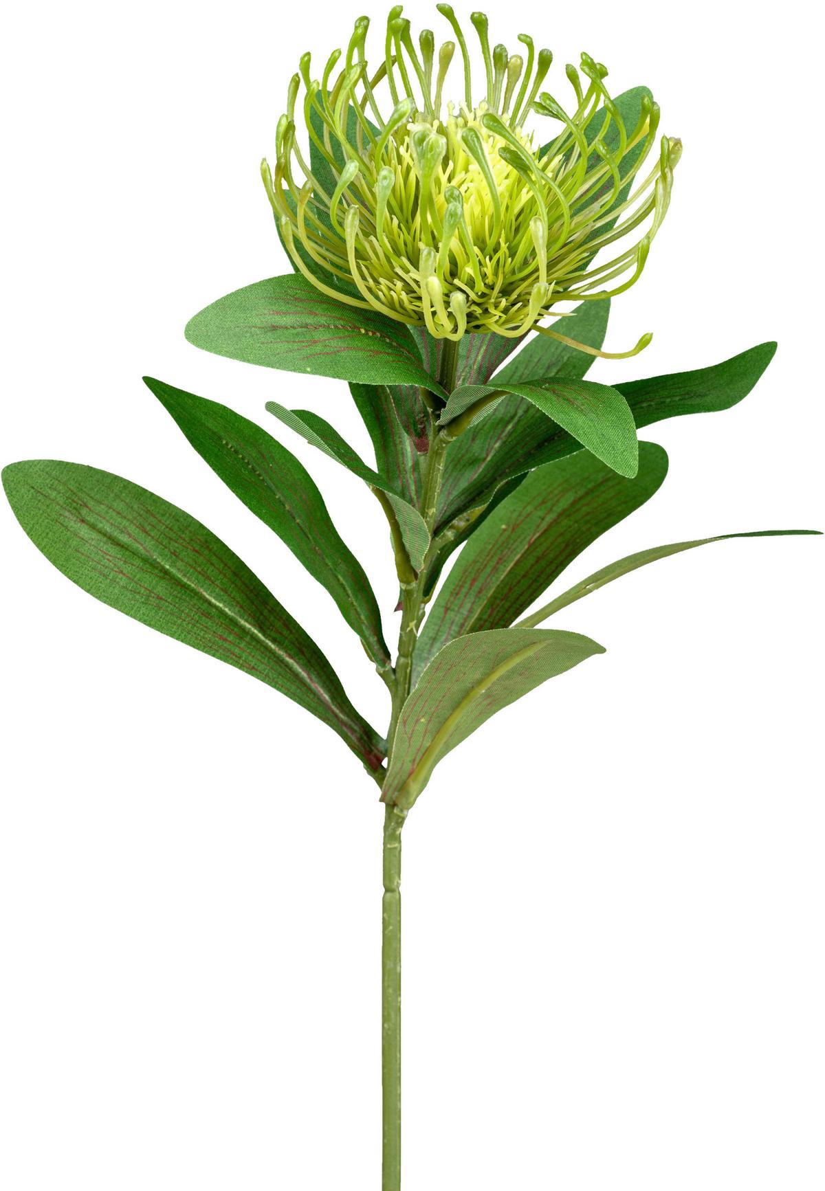 Beim Anblick der langen, grünen Blütenblätter, die königlich emporwachsen, glaubt man fast, der nächste Kolibri könnte sobald ums Eck fliegen, um vom Nektar der Protea zu trinken. Sie hat eine Höhe von ca. 64 cm und die wunderschönen Blätter dieser Blume aus Kunststoff sind dunkelgrün und runden ihren Gesamtanblick harmonisch ab.