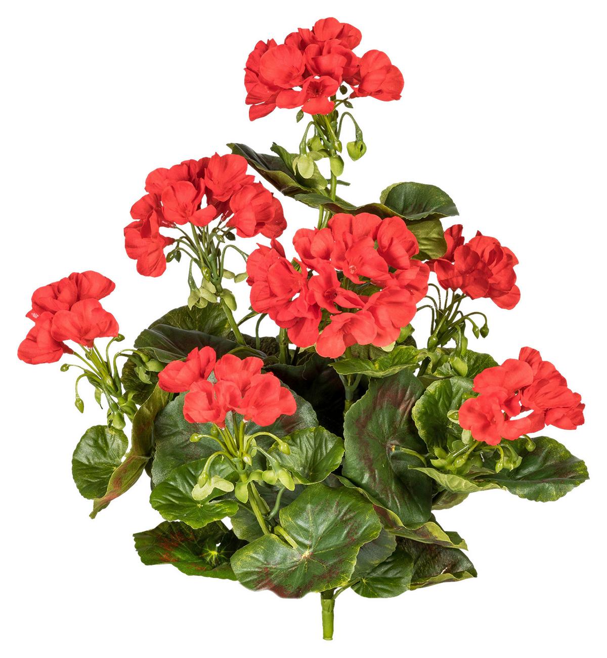 Kunstpflanze Geranie H: 40 cm - Rot/Grün, Design, Kunststoff (40cm)