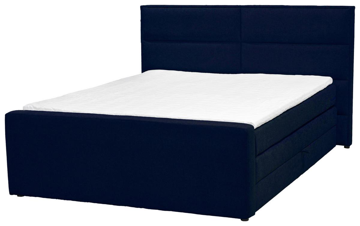 Boxspringbett in Dunkelblau: Mit gepolstertem Kopfteil, Fußbank und Bettkasten