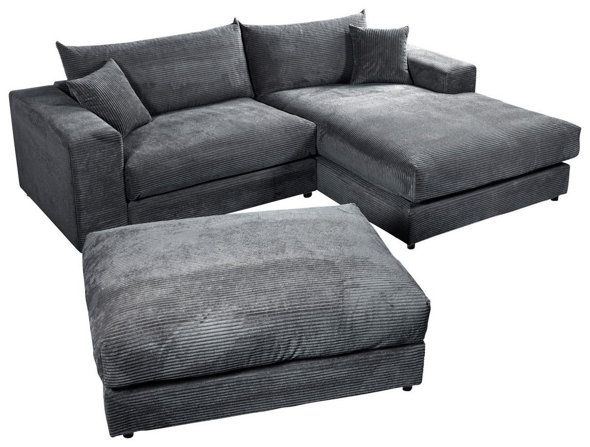 Livetastic Ecksofa Funny S Dunkelgrau mit Hocker S: 265x180 cm Cord/Velours Dunkelgrau • Füße: Kunststoff Schwarz • LF: ca. 220x170 cm • S: ca. 265x180 cm • inkl. Zierkissen
