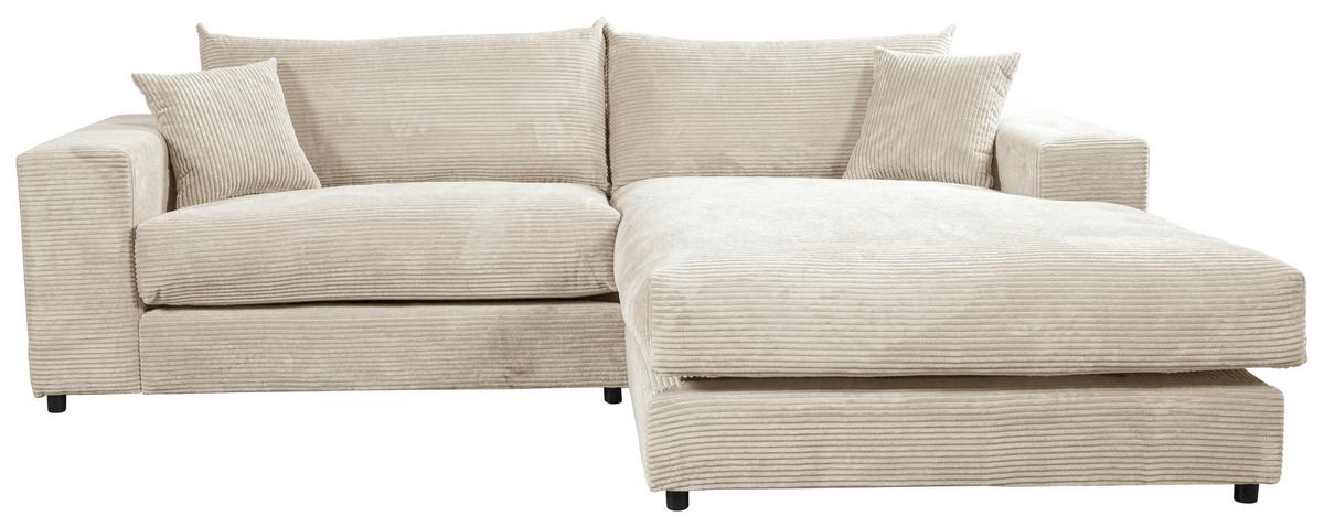 Livetastic Ecksofa Funny S Rechts Creme S: 265x180 cm Cord/Velours Creme • inkl. Zierkissen • max. belastbar ca. 160 kg • S: ca. 265x180 cm