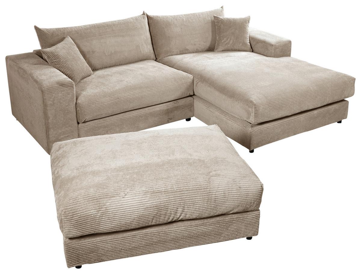 Livetastic Ecksofa Funny S Rechts Hbraun mit Hocker S: 265x180 cm Cord/Velours Hellbraun • Füße: Kunststoff Schwarz • LF: ca. 220x170 cm • S: ca. 265x180 cm • inkl. Zierkissen