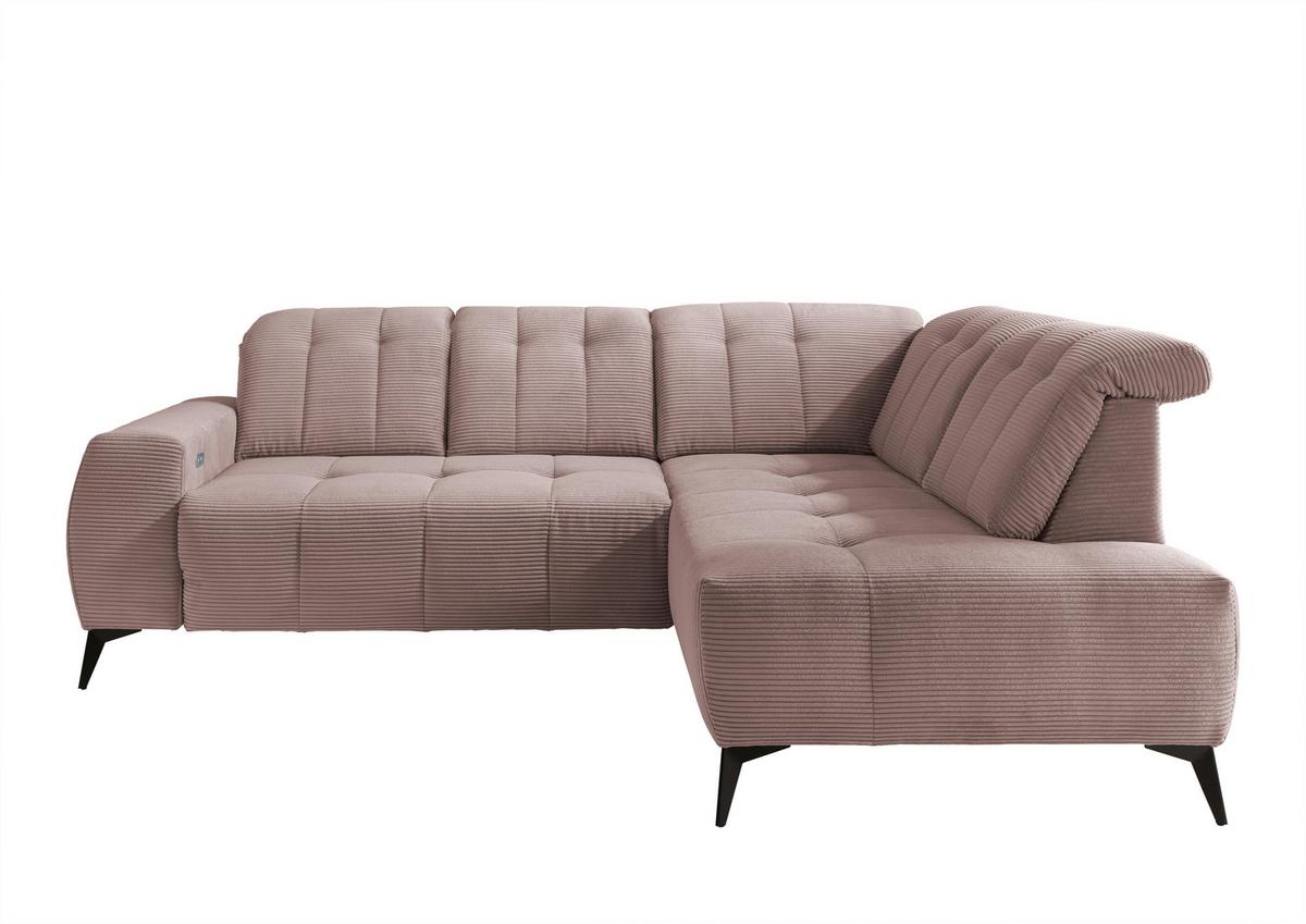 Livetastic Ecksofa mit USB Anschluss Sano, Rosa, S: 261x200 cm Cord Rosa • mit Kopfteilverstellung • inkl. USB Anschluss • S: ca. 261x200 cm