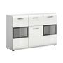 Türanschlag: links, rechts Material entspricht Hauptmaterial: Ja Farbe: Weiß Hochglanz Anzahl der Türen: 3 Art der Tür: Drehtür Schublade(n)
