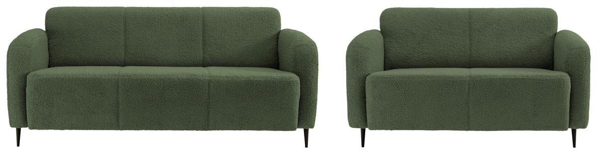 Gemütliche Sitzgarnitur in Moosgrün: 2-Sitzer & 3-Sitzer mit Teddystoff