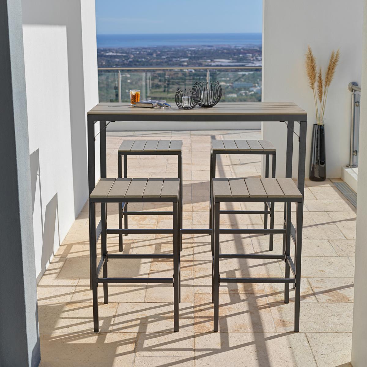 Luxus für draußen: modernes Barset OSLO mit Tisch und vier Hockern