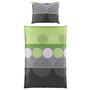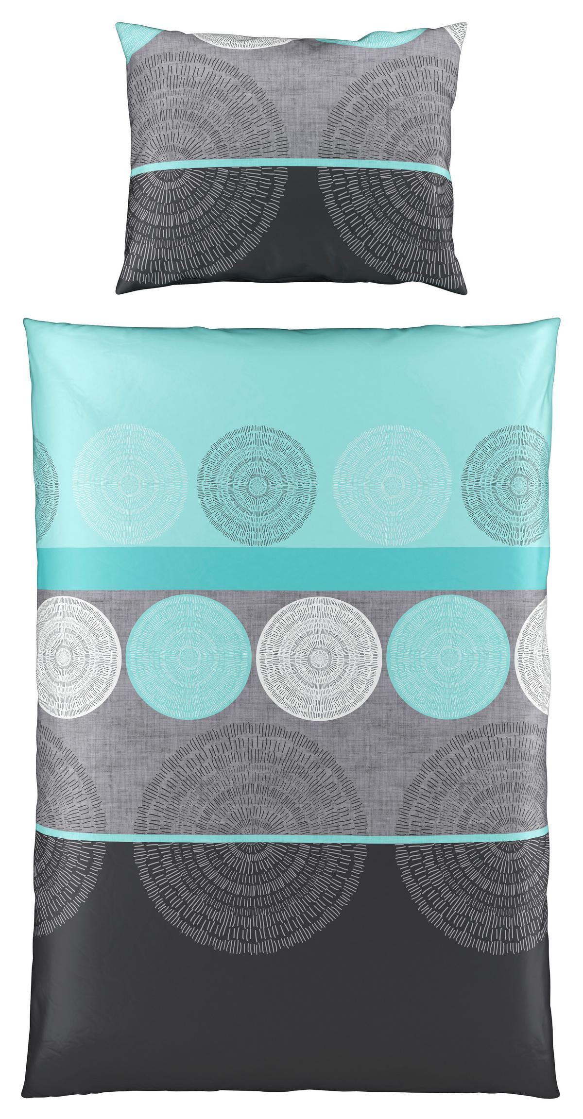 Die Bettwäsche DENISE der Marke LUCA BESSONI wird Ihrem Schlafzimmer einen modischen und lebendigen Touch verleihen. Der Stoff aus 100% feinstem Baumwollsatin mit Seiden-Finish hat ein modernes Dessin in wunderschönem Türkis/Grau mit ansprechenden Kreis-Motiven. Schlafen und Träumen mit Stil!