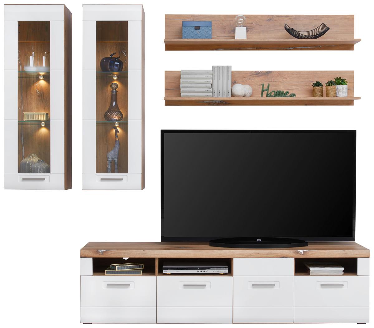 - Wohnkombination 5--Teilig. mit LED Malta, Eiche Dekor/WeißZum Produkt