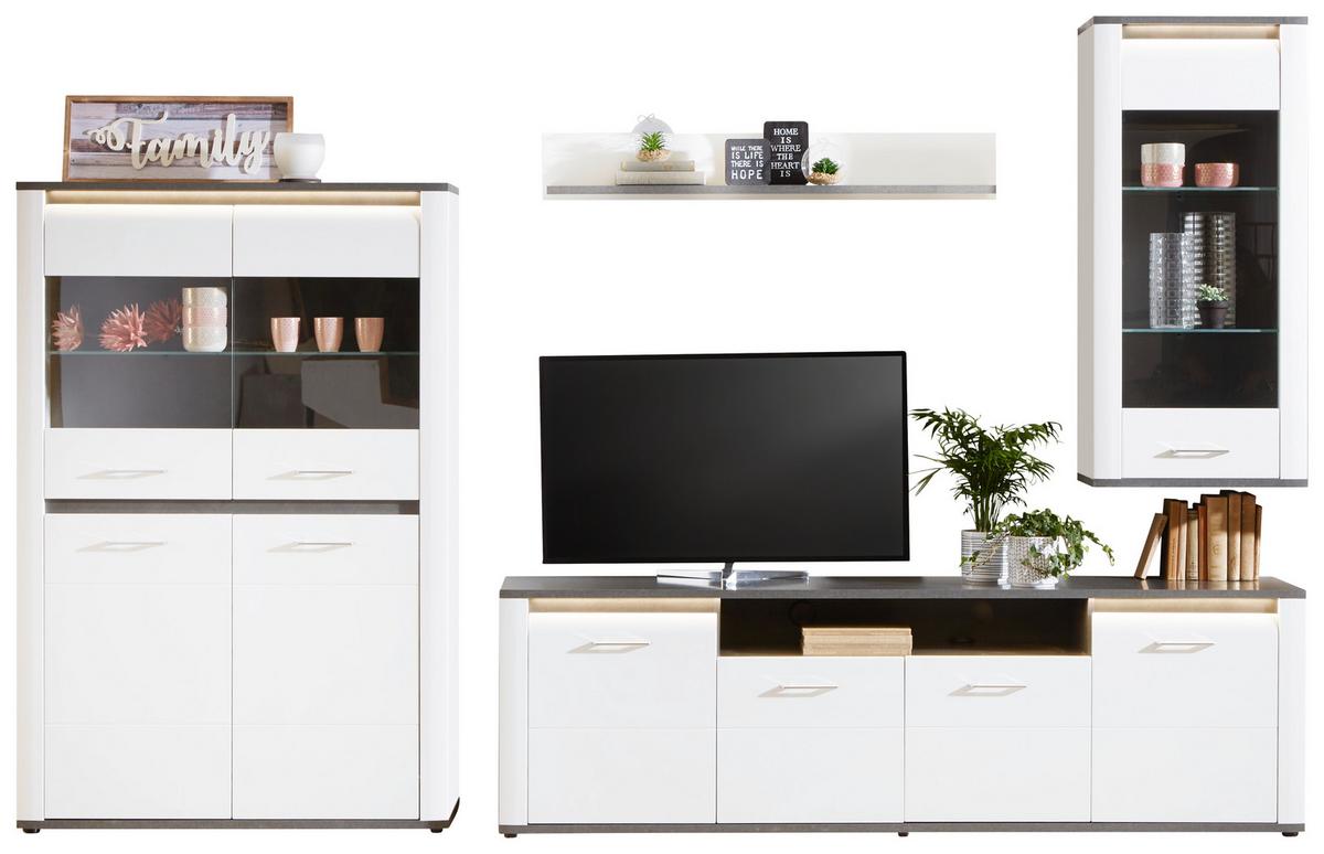 - Wohnkombination 5 tlg. mit LED Malta 7, Betonoptik/WeißZum Produkt