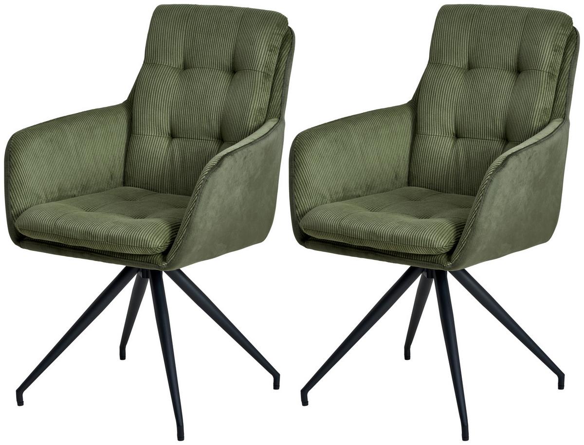 Hohe Rückenlehne, charmante Kombi aus Cord und Samt: Das Armlehnstuhl-Set NIZZA von MID.YOU in Waldgrün überzeugt mit individuellem Charakter. Die Gesamtmaße des Sitzmöbels betragen ca. 60 x 94 x 64 cm (B x H x T).