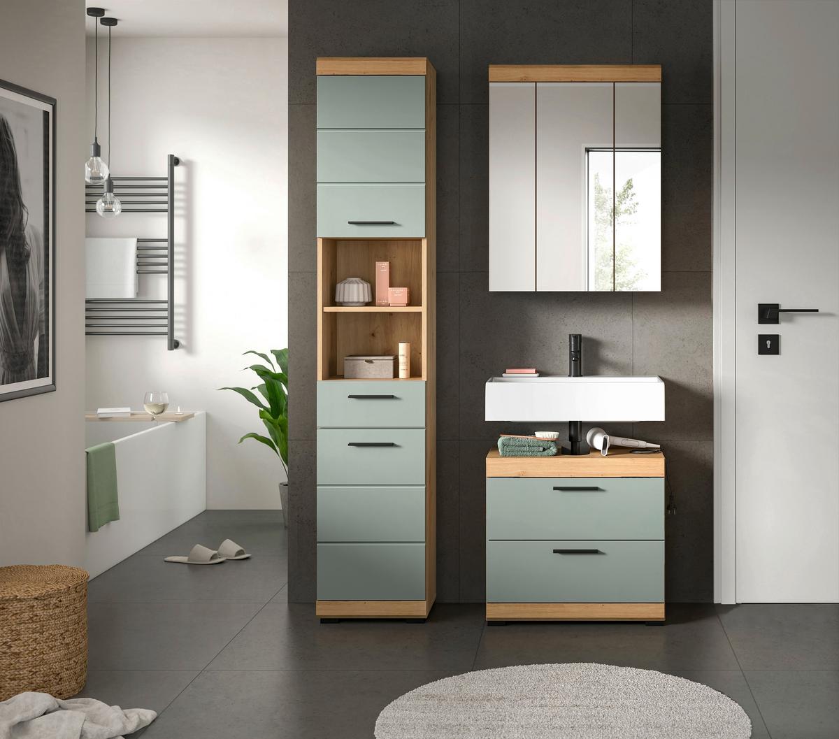 MID.YOU Badezimmer Scout Salbeigrün/Eiche D. B: 97 cm
