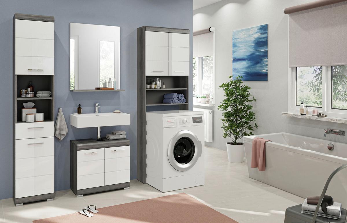 - Nicht im Lieferumfang enthalten: Armatur, Aufsatzbeleuchtung, Ablaufgarnitur, Waschbecken, Waschmaschine