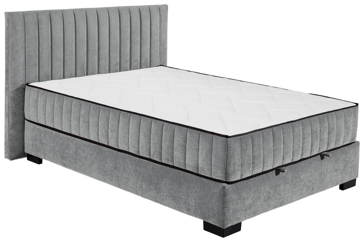 MID.YOU Boxbett mit Bettkasten 140x200 Nagol C Mikrovelours, Anthrazit • Füße: Schwarz • LF: ca. 140x200 cm • LxBxH: ca. 214x165x114 cm