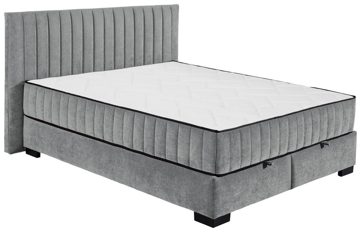 MID.YOU Boxbett mit Bettkasten 160x200 cm Nagol C Mikrovelours, Anthrazit • Füße: Schwarz • LF: ca. 160x200 cm • LxBxH: ca. 214x185x114 cm