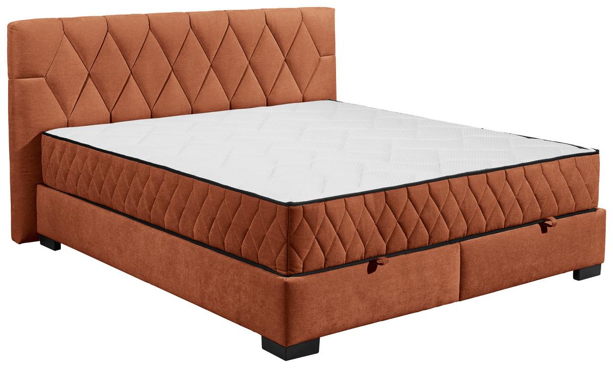 - Bettkasten, gepolstertes Kopfteil, Federkernmatratze, Wendematratze mit unterschiedlichen Härtegraden