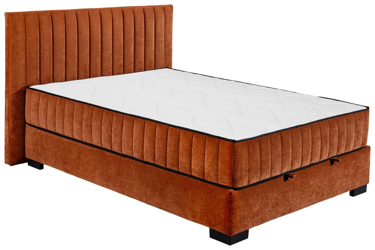 MID.YOU BOXBETT NAGOL C Mikrovelours, Cognac • Füße: Schwarz • LF: ca. 140x200 cm • LxBxH: ca. 214x165x114 cm