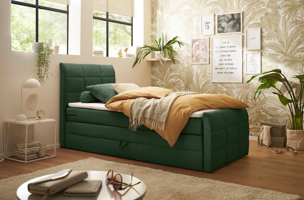 - Boxspringbett Mira Boucle Dunkelgrün,lf:120x200cmZum Produkt