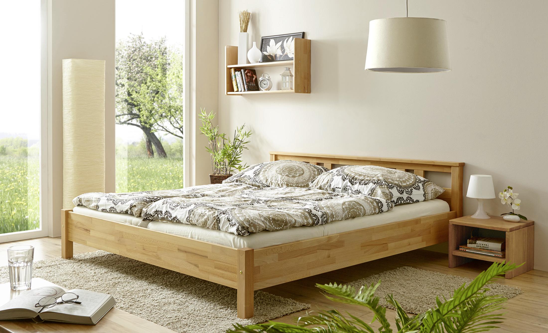 Massivholzbett MERCI in Buchefarben