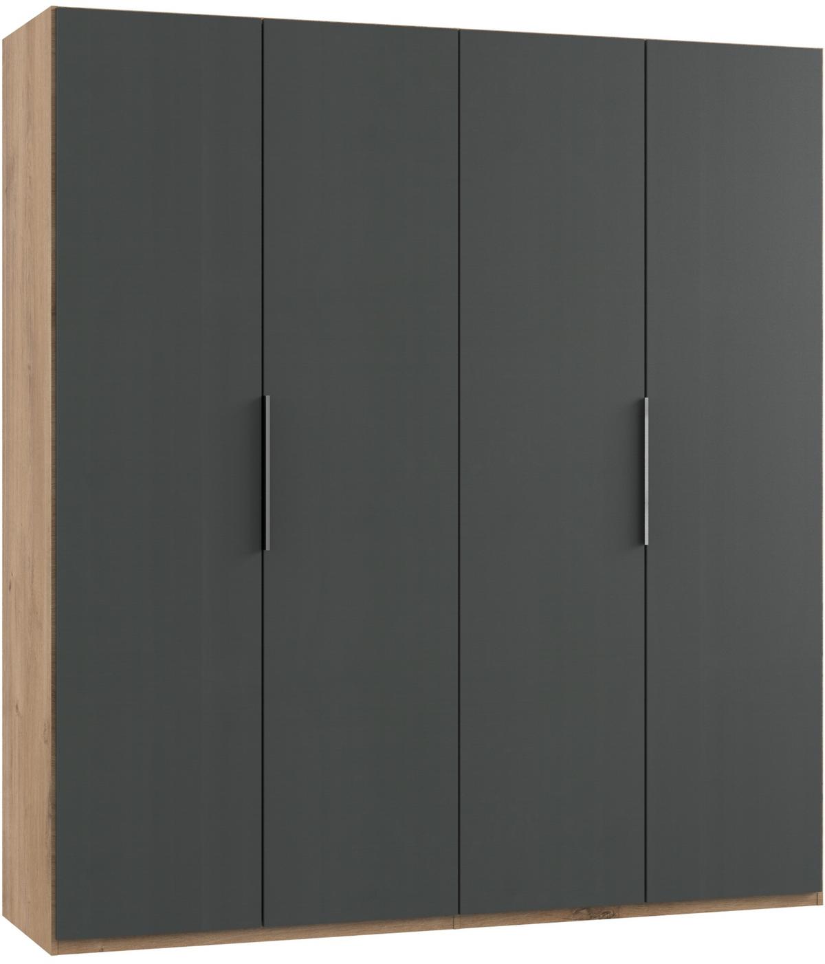 Der DrehtürenschrankLEVEL von MID.YOU in Größe von ca. 200 x 216 x 58 (B x H x T) in Graphit- und Eichefarben ist eine stilvolle und praktische Stauraumlösung für Ihr Schlafzimmer. Dank 2 Kleiderstangen sowie auch 2 Einlegeböden erhalten Sie reichlich Stauraum für Ihre Garderobe, Aufbewahrungsboxen und kleinen Utensilien.