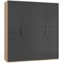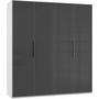 Mit den Abmessungen von etwa 200 x 216 x 58 cm (B x H x T) verfügt er über vier Türen - zwei davon mit Spiegeln - sowie über je zwei Kleiderstangen und verstellbare Einlegeböden. Das Modell ist "Made in Germany" und in vielen weiteren Ausführungen erhältlich.