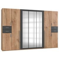 Eiche Dekor und Graphitfarben: Kleiderschrank mit 9 Türen und 4 Schubladen
