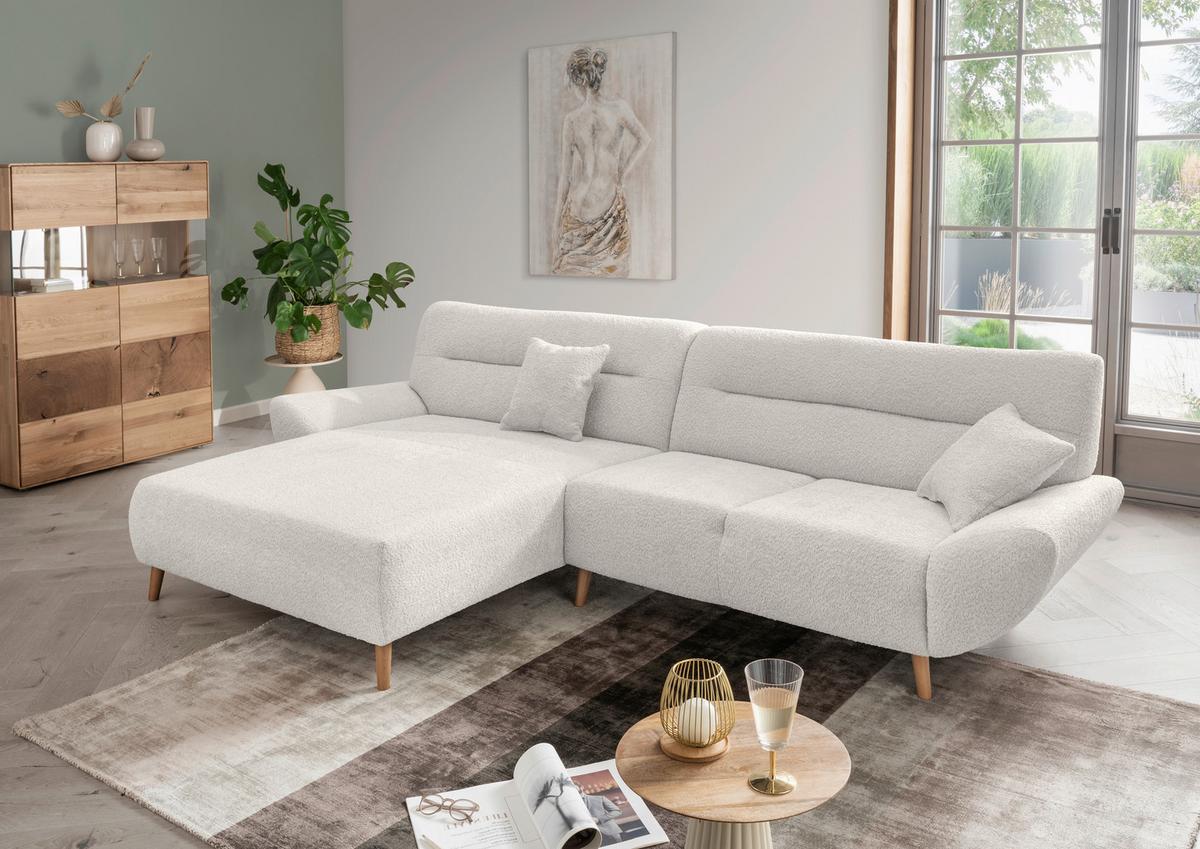 MID.YOU Ecksofa Drago, Weiß S: 166x290 cm Bouclébezug: Weiß • Seitenverkehrt erhältlich • Ottomane links, L-Form • Stellmaß: ca. 166x290 cm • Inkl. Zierkissen