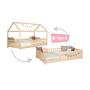 Bet ist optisch ok. Wenn man aber ins Bett eine normale bzw. Etwas dickere Matrazze ein legt, sind die gitter sinloss, weil sie zu niedrig sind. Zudem kwiecht und knarcht das Bett schon wenn ein Kind mit 10Kg drauf liegt und sich bewegt, also sehr schlecht Verarbeitet oder schlechte Holz qualität....bin halt sehr entäscht für ein Kinderbett rahmen über 300€ würde man was besseres erwatten.
