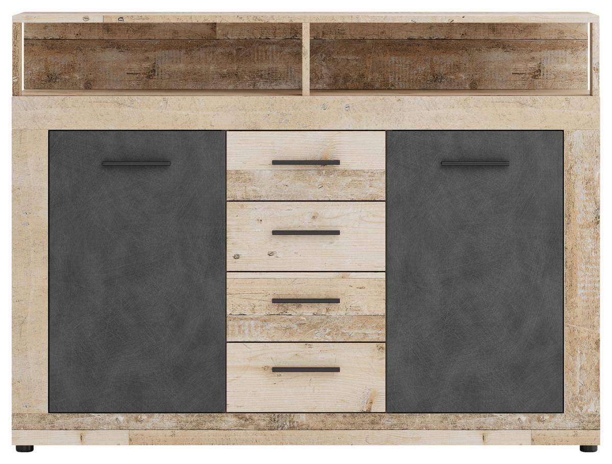 MID.YOU Kommode Lupo Eiche Dekor Anthrazit B: 119 cm Eiche Dekor/Anthrazit • Montage: stehend möglich • 2 Einlegeböden • BxHxT: ca. 119x96x32 cm • Inkl. Softclosesystem