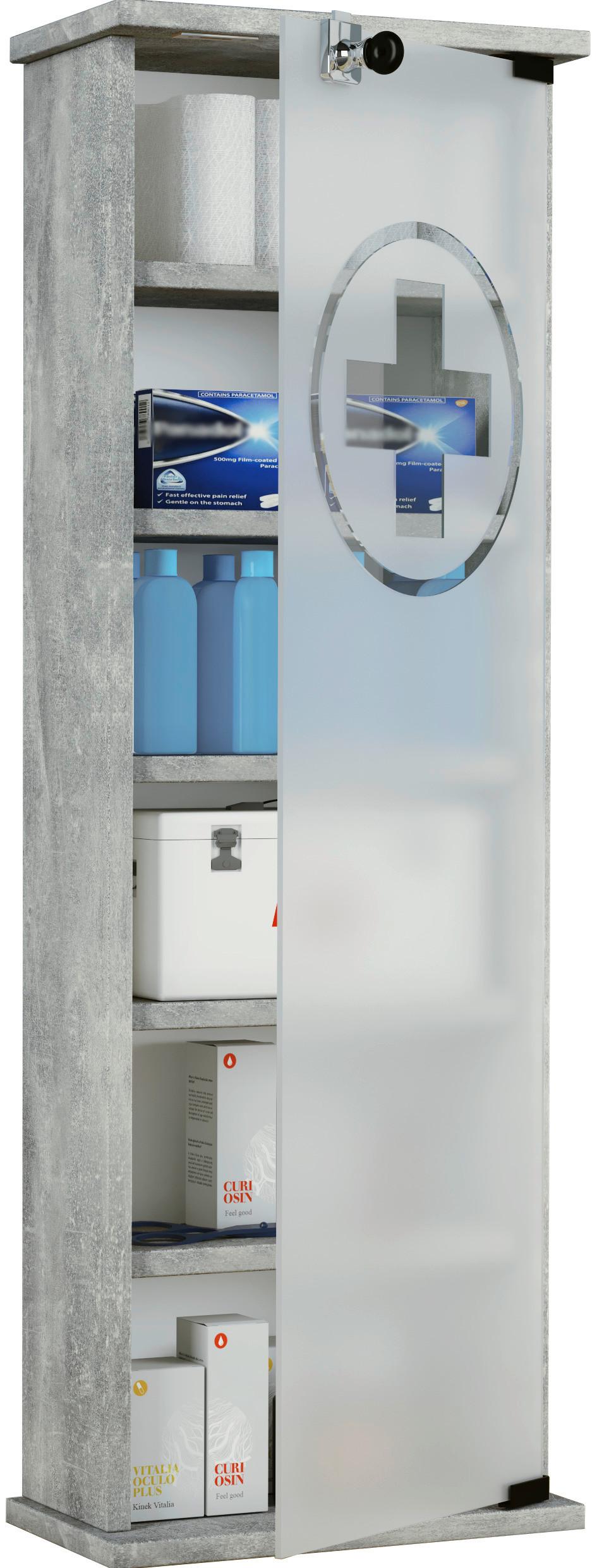 So schön kann ein Medizinschrank sein: In grauer Beton-Optik mit Glastüre