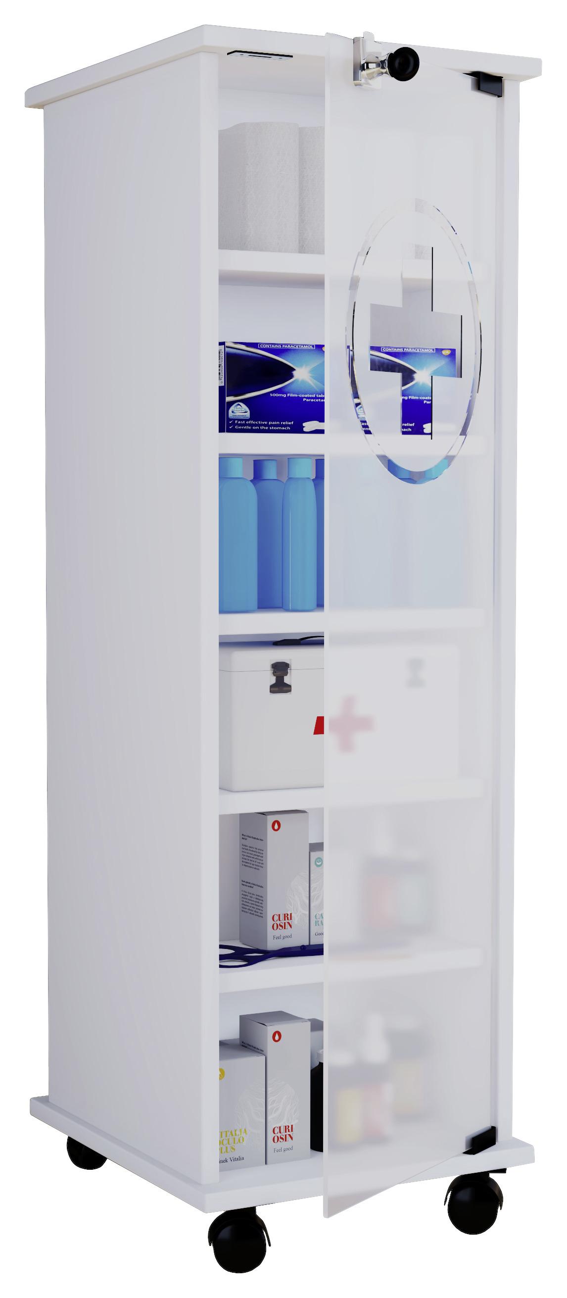 Abschließbarer Medizinschrank – mit Glastür und 5 Einlegeböden