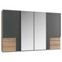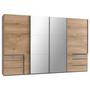MID.YOU Schwebetürenschrank Level 36 A Weiß/Eiche Dek/Spiegel,B:350cm Weiß/Plankeneiche Dekor • 4 Türen, 6 Laden, Spiegel • Griffe chromfarben • BxHxT: 350x216x65cm