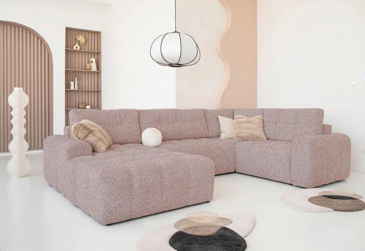 MID.YOU Wohnlandschaft Lulu Rot U: 184x333x213cm Bezug: Rot • Füße: Kunststoff, Schwarz • Bettkasten • Stellmaß:ca.184x333x213cm • Liegefläche: ca. 140x268 cm