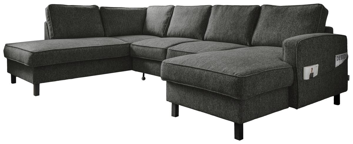 MID.YOU Wohnlandschaft Molly Dunkelgrau B: 298 cm Bezug: Cord Dunkelgrau • Füße: Eiche Schwarz • LF: ca. 136x266 cm • BxHxT: ca. 298x88x198 cm • inkl. Bettkasten