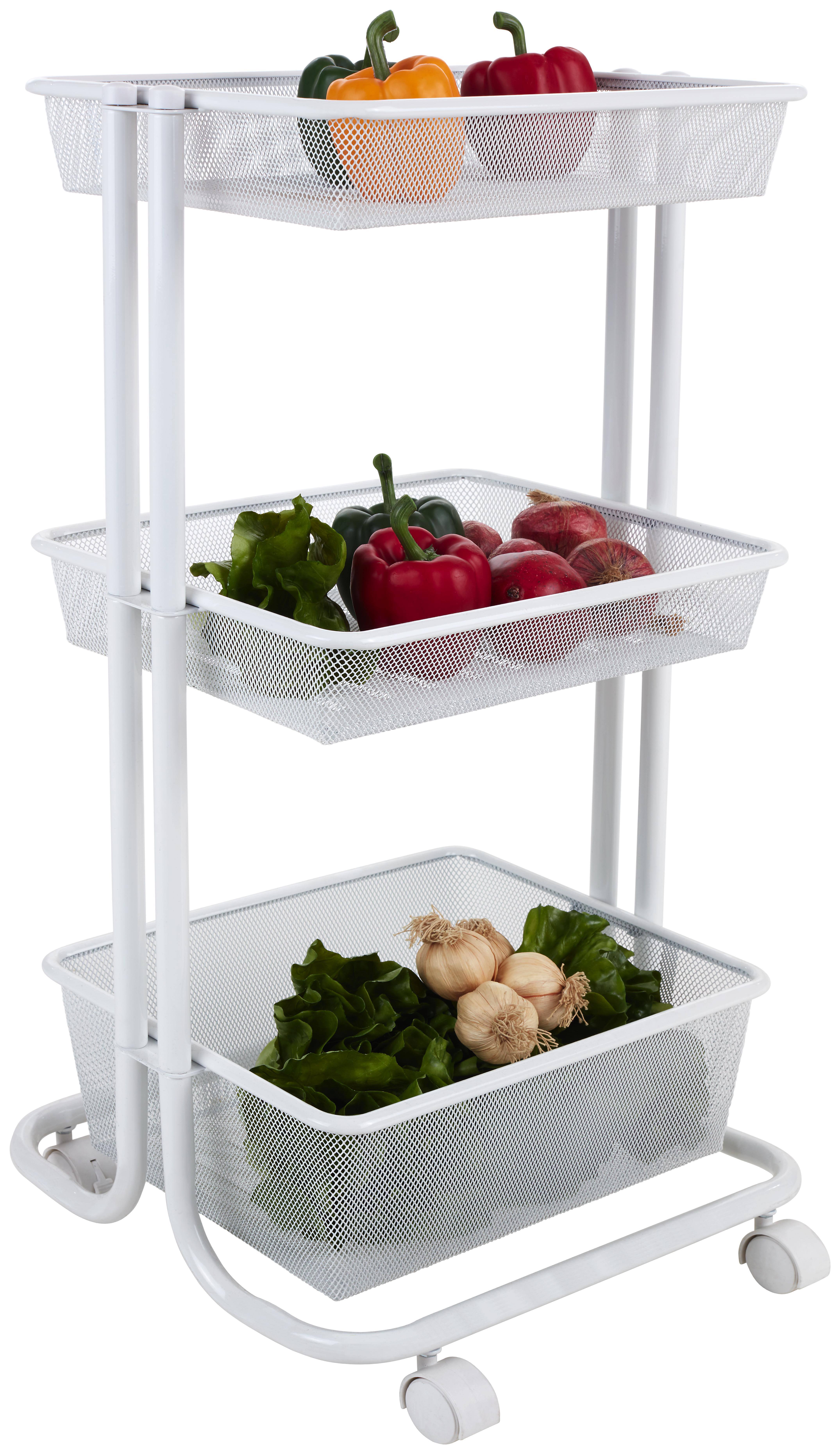 Der Allzweckwagen LISI kann im ganzen Haus eingesetzt werden. In seinen drei Fächern finden diverse Utensilien ihren Platz. Der Organizer auf vier Universalrollen mit Stoppfunktion ist aus pulverbeschichtetem Carbonstahl gefertigt und hat eine Belastbarkeit von 30 kg. Die schlichte weiße Optik passt zu verschiedenen Raum-Designs.