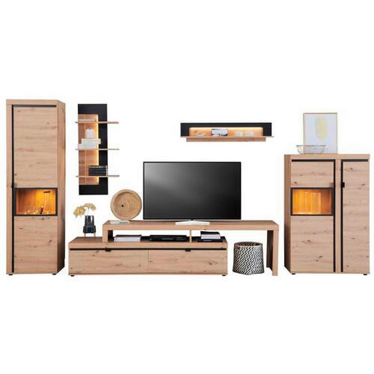 - Wohnkombination 5--Teilig. mit LED Nyon, Eiche Dekor/SchwarzAktuelles Produkt