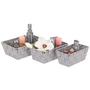 Das 3-teilige Set enthält einen Korb mit ca. 26 x 16 x 9 cm (L x B x H), einen Korb mit ca. 23,5 x 13,5 x 9 cm (L x B x H) und einen Korb mit ca. 21 x 11 x 9 cm (L x B x H).