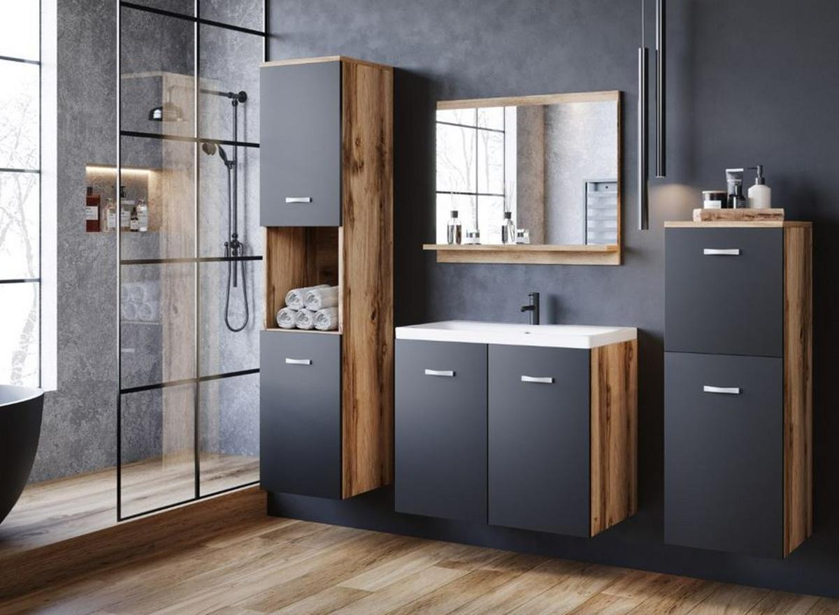 - Badmöbel-Set 5-Tlg. Alba B:140 cm Eiche Dekor/GraphitfarbenZum Produkt