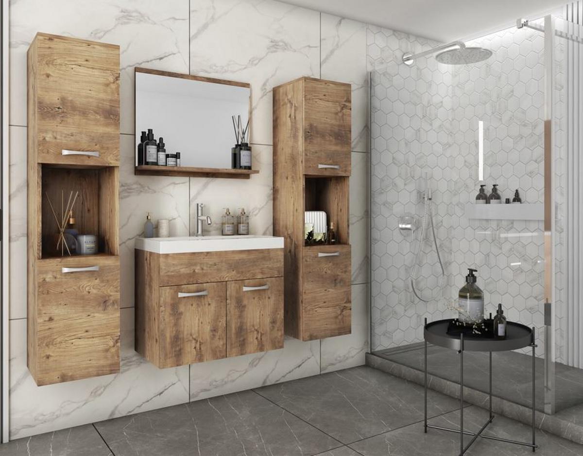 Waschtisch, Waschbecken, Spiegel mit Ablage, 2 Hochschränke