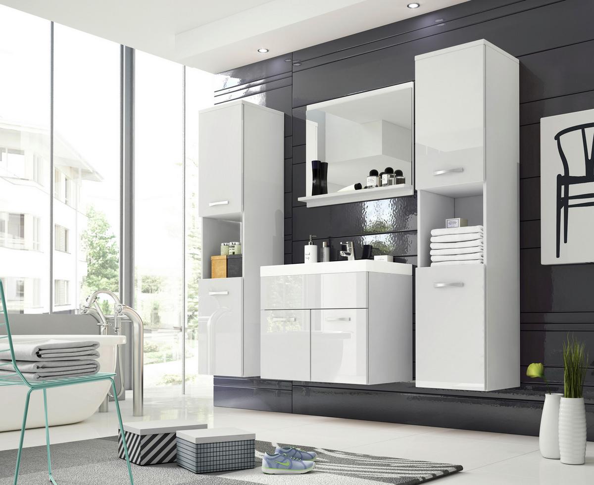 Badmöbel-Set 5--Teilig. Montreal XL Weiß matt/Weiß - Weiß Hochglanz/Weiß, LIFESTYLE, Holzwerkstoff (120cm) - P & B
