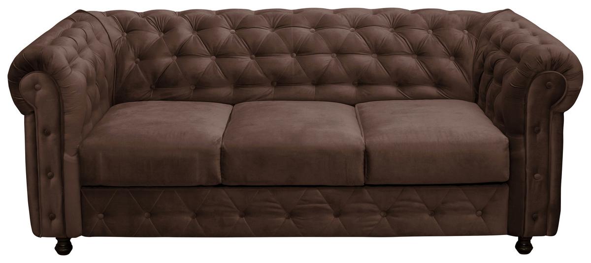 Chesterfield-Sofa Cardiff Braun 3-Sitzer Samt B: 205 cm
