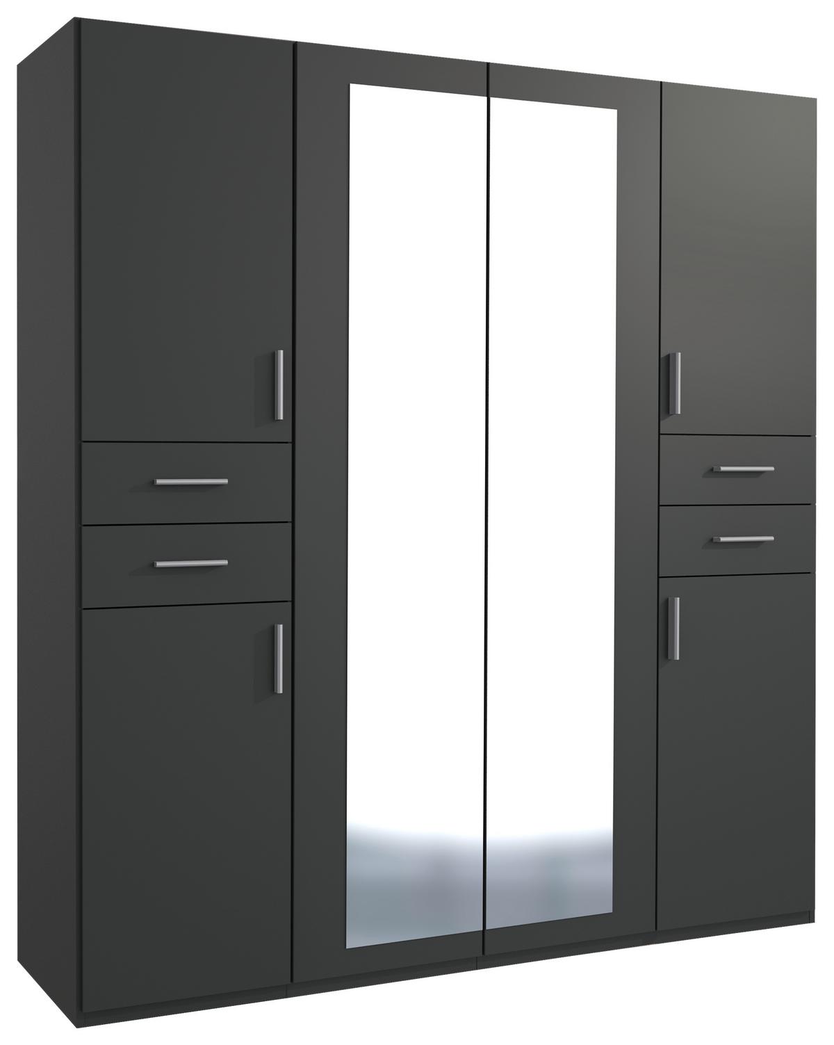 P & B Drehtürenschrank mit Spiegel + Laden B: 180 cm Vegas, Graphit