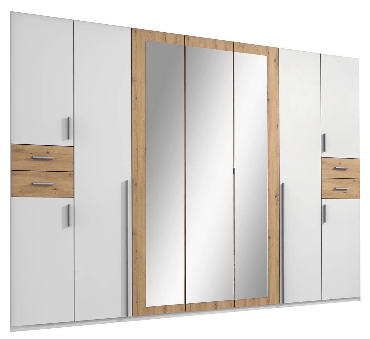 - Drehtürenschrank mit Spiegel 300 cm Level, Weiß/Eiche DekorZum Produkt