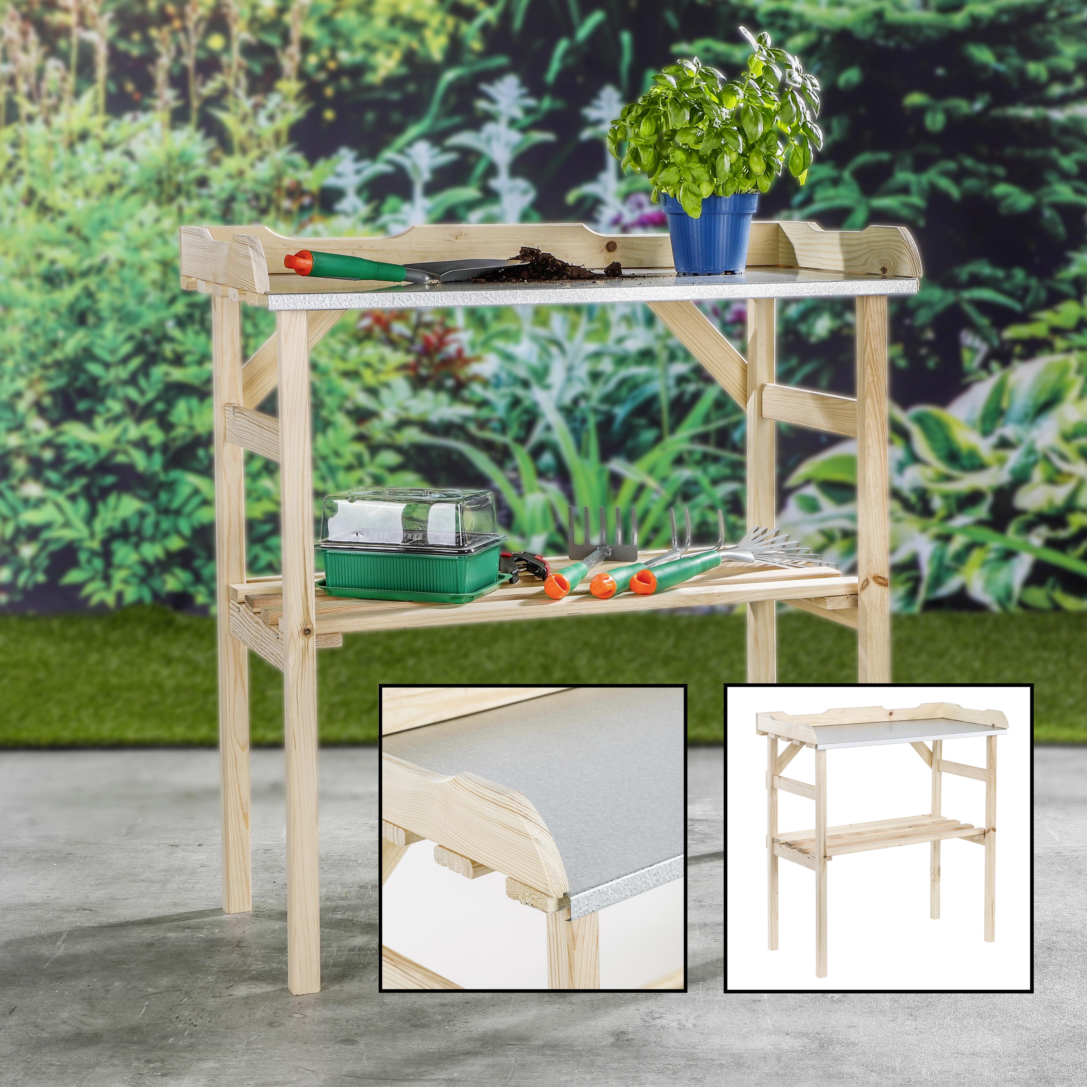 Säen, pflanzen, umtopfen: Pflanztisch aus Echtholz mit verzinkter Arbeitsplatte