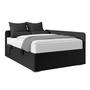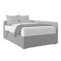 Die Gesamtmaße des Stauraumbettes betragen ca. 208 x 126 x 84 cm (L x B x H). Seitlich am Bettrahmen befindet sich eine praktische Tasche. Die Liegehöhe beträgt ca. 37,5 cm. Der Lattenrost mit 28 Leisten hat eine Bauhöhe von ca. 7 cm. Das Polsterbett hat eine gesamte Belastbarkeit von ca. 120 kg.