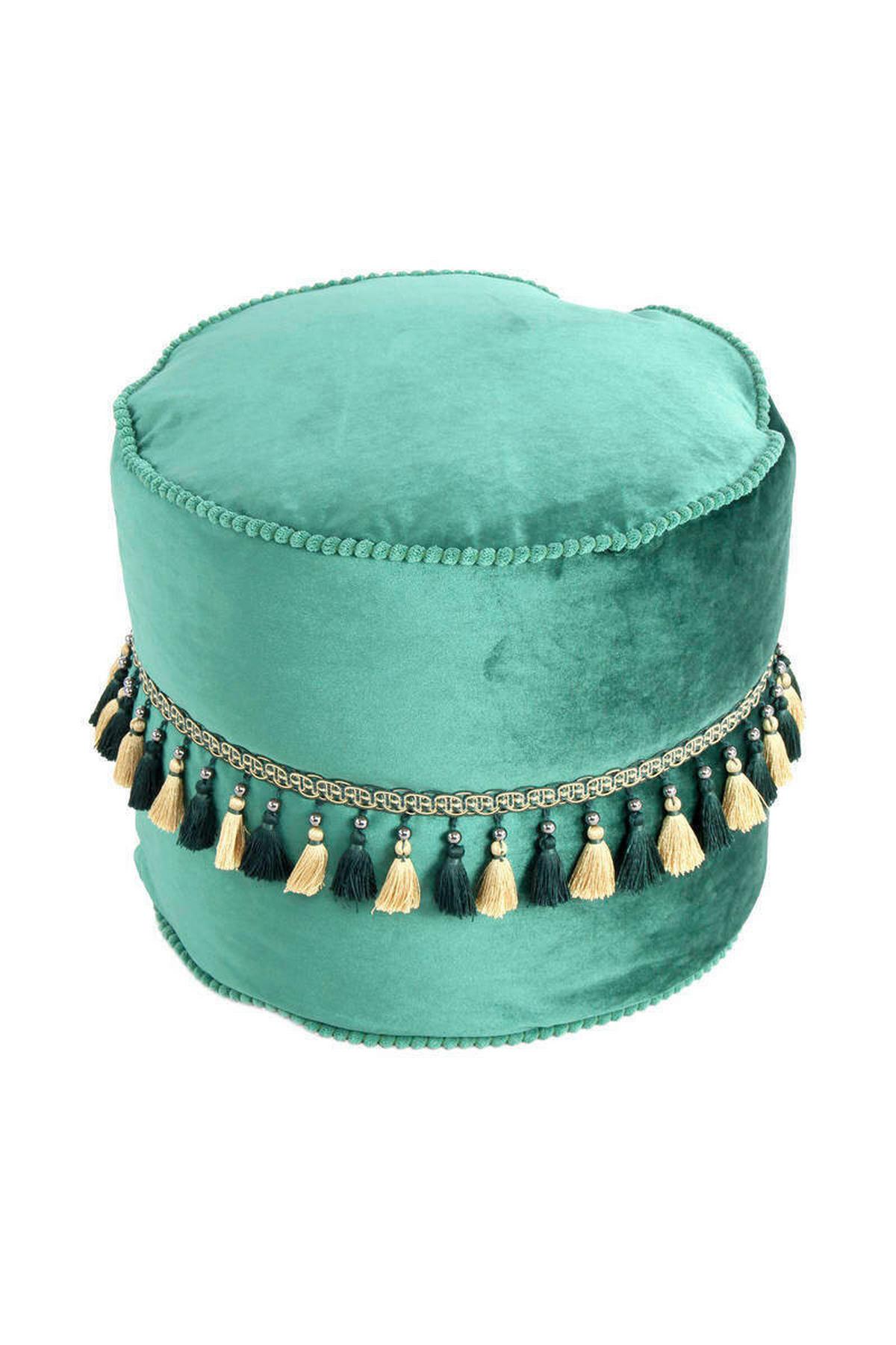 Ein Hauch von Tausendundeiner Nacht – der Pouf TAJ MAHAL mit Samtbezug in Grün