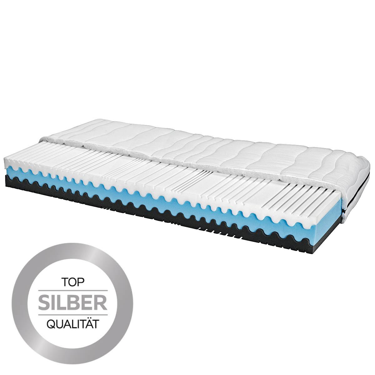 - Besonderheiten: Bezug abnehmbar/waschbar, Ober- und Unterseite versteppt, für Hausstauballergiker geeignet, wendbar, optimale Belüftung, für verstellbare Lattenroste geeignet, schadstoffgeprüft, Härtegradauswahl für beide Seiten, Wendematratze, Matratzenklasse Silber