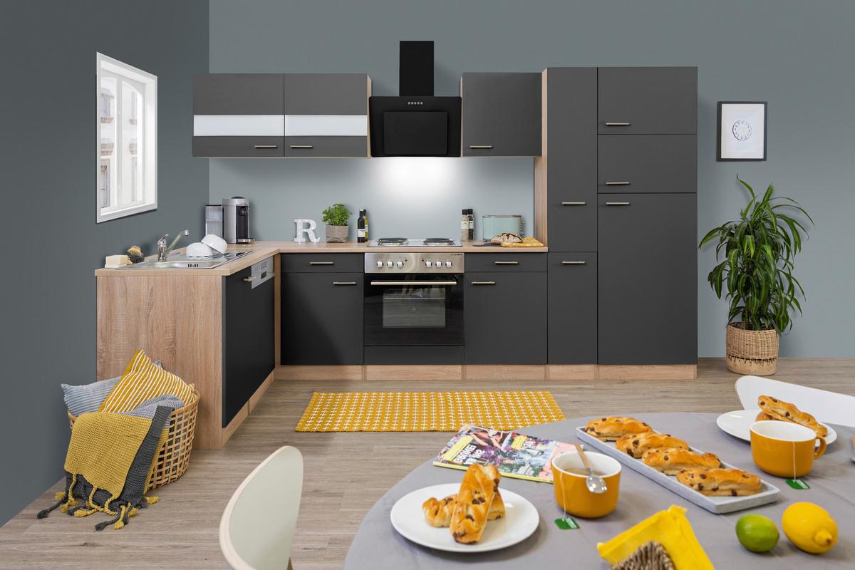 - Eckküche Economy mit Geräten 172x280 cm Schwarz/Eiche DekorZum Produkt