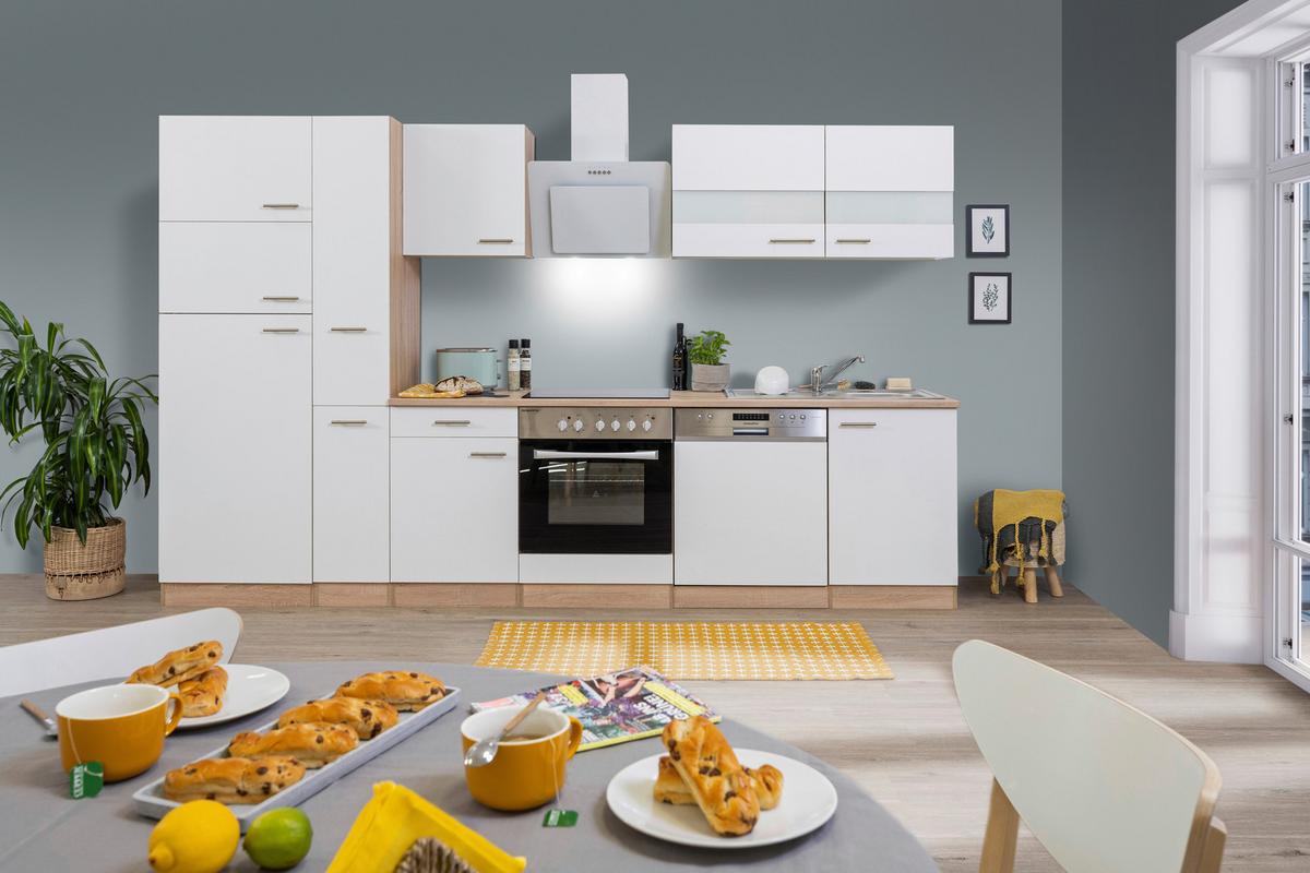 - Küchenzeile mit Geräten B: 310 cm Weiß/Eiche DekorZum Produkt